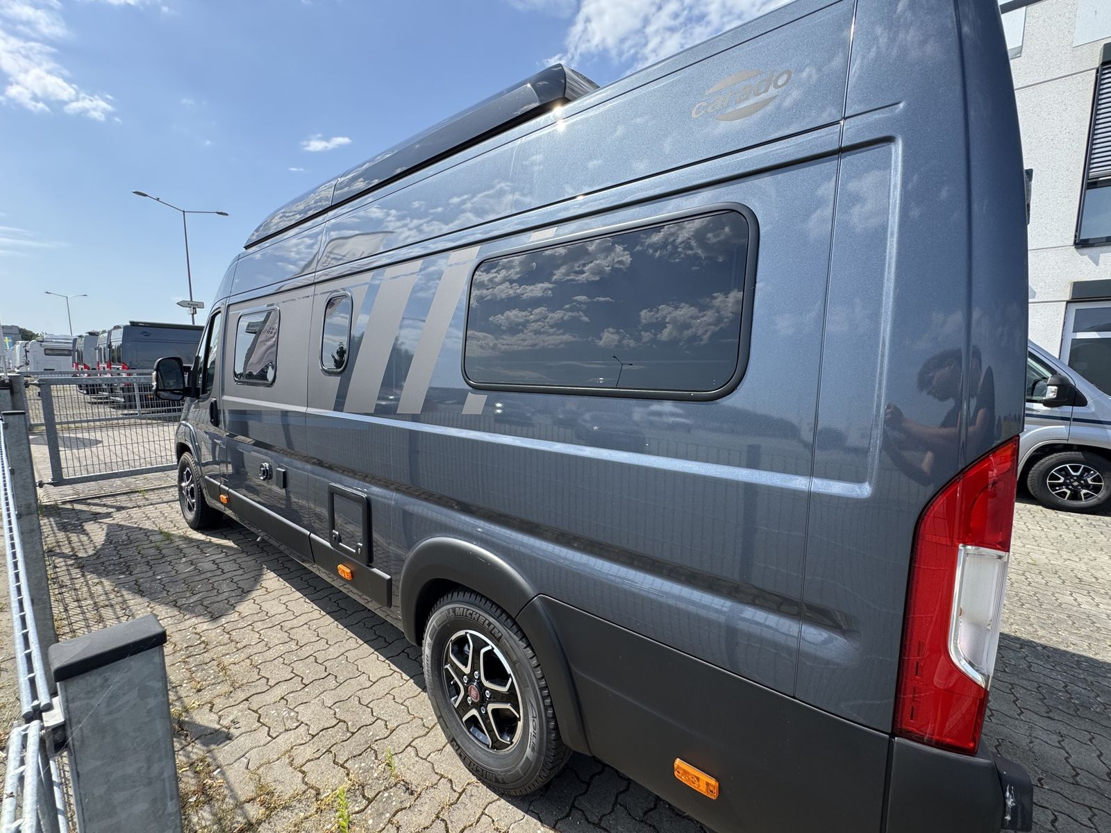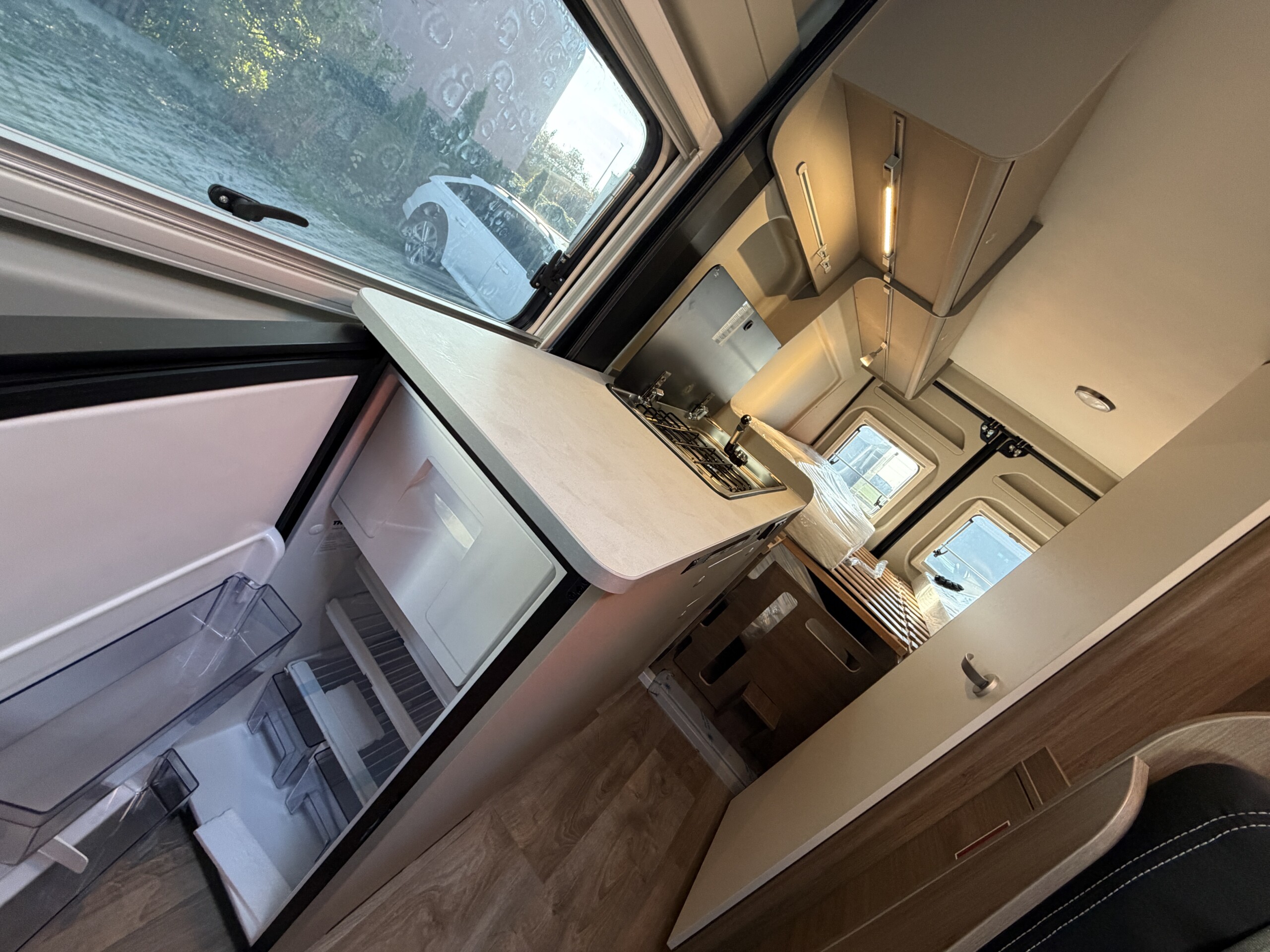 Predávame nový campervan CARADO CV640 s otváracou strechou a automatickou prevodovkou, ktorý spája kompaktnosť dodávky s komfortom plnohodnotného obytného auta. Ponúka 4-5 pohodlnych miest na spanie – zadné lôžka pre dvoch dospelých a dieťa, ďalšie v jedálenskej časti a romantickú strechu obľúbenú najmä deťmi. Výbava zahŕňa kúrenie Truma 6E (plyn + elektrina), klimatizáciu v kabíne, LED svetlá, parkovacie senzory, Isofix, priestranný interiér s množstvom úložného priestoru, plne vybavenú kuchyňu a kúpeľňu so sprchou a toaletou. Vďaka kvalitnej izolácii, automatickej prevodovke a 7-ročnej záruke proti prenikaniu vody je tento model ideálny na pohodlné cestovanie počas celého roka.