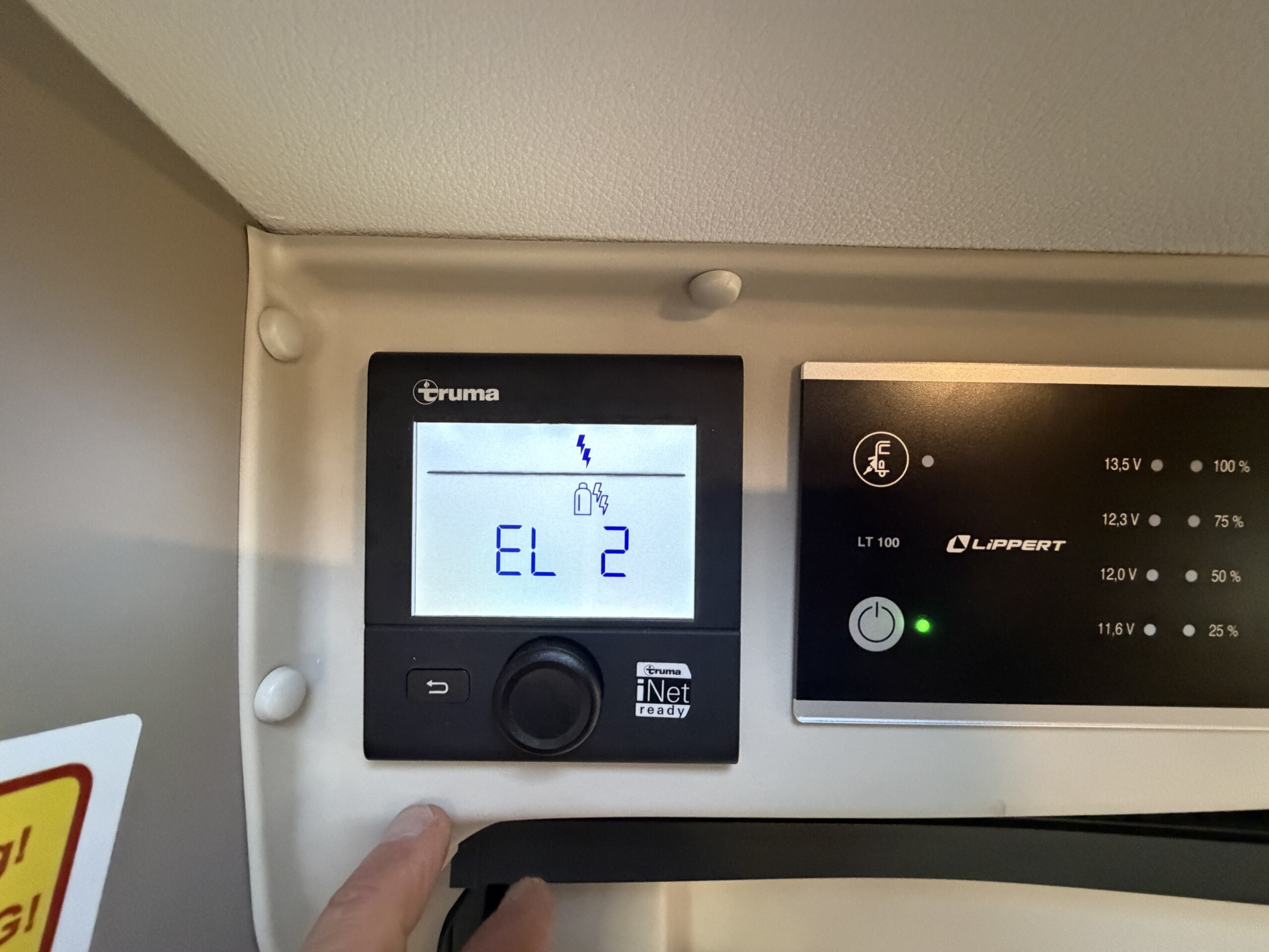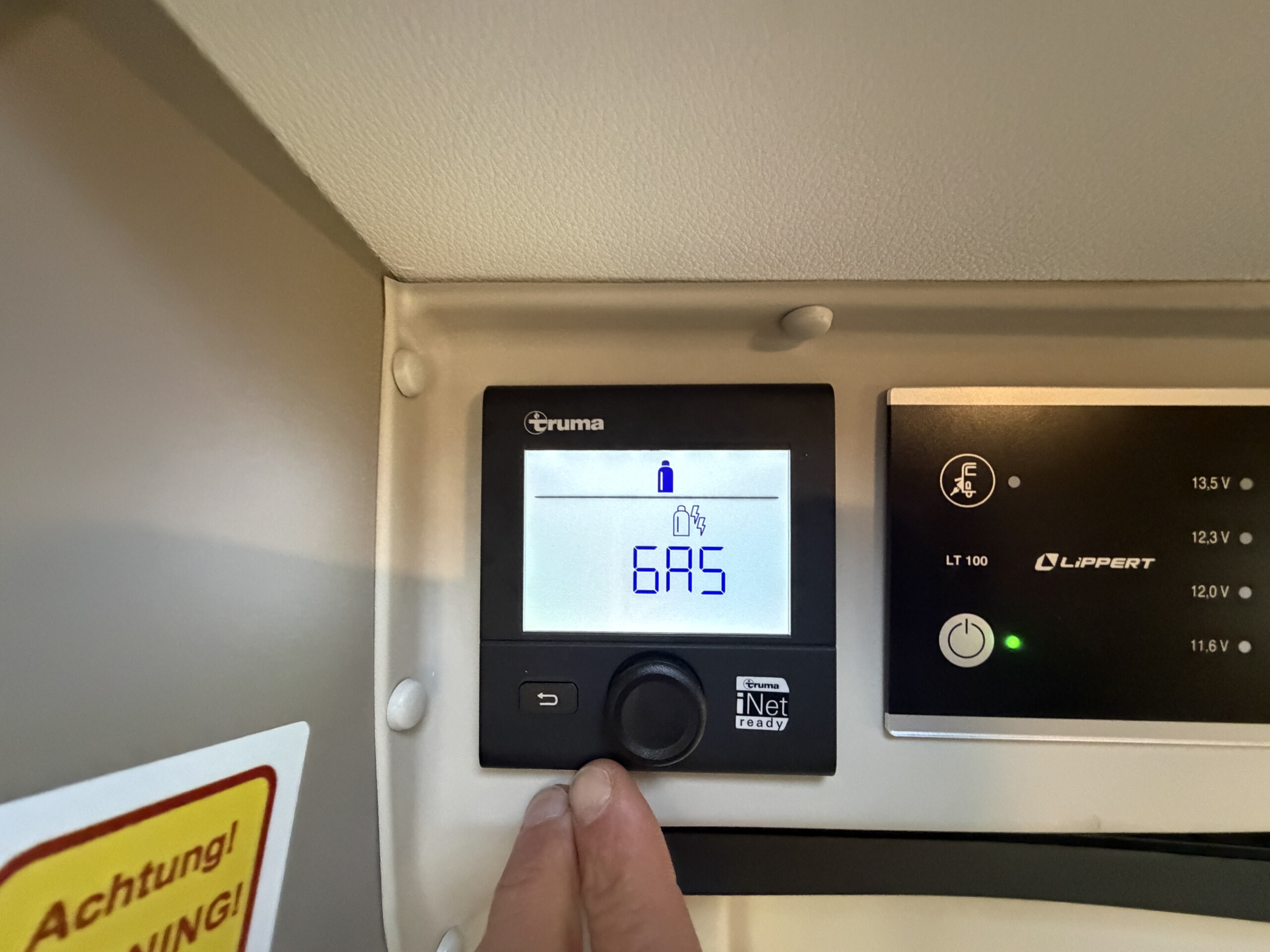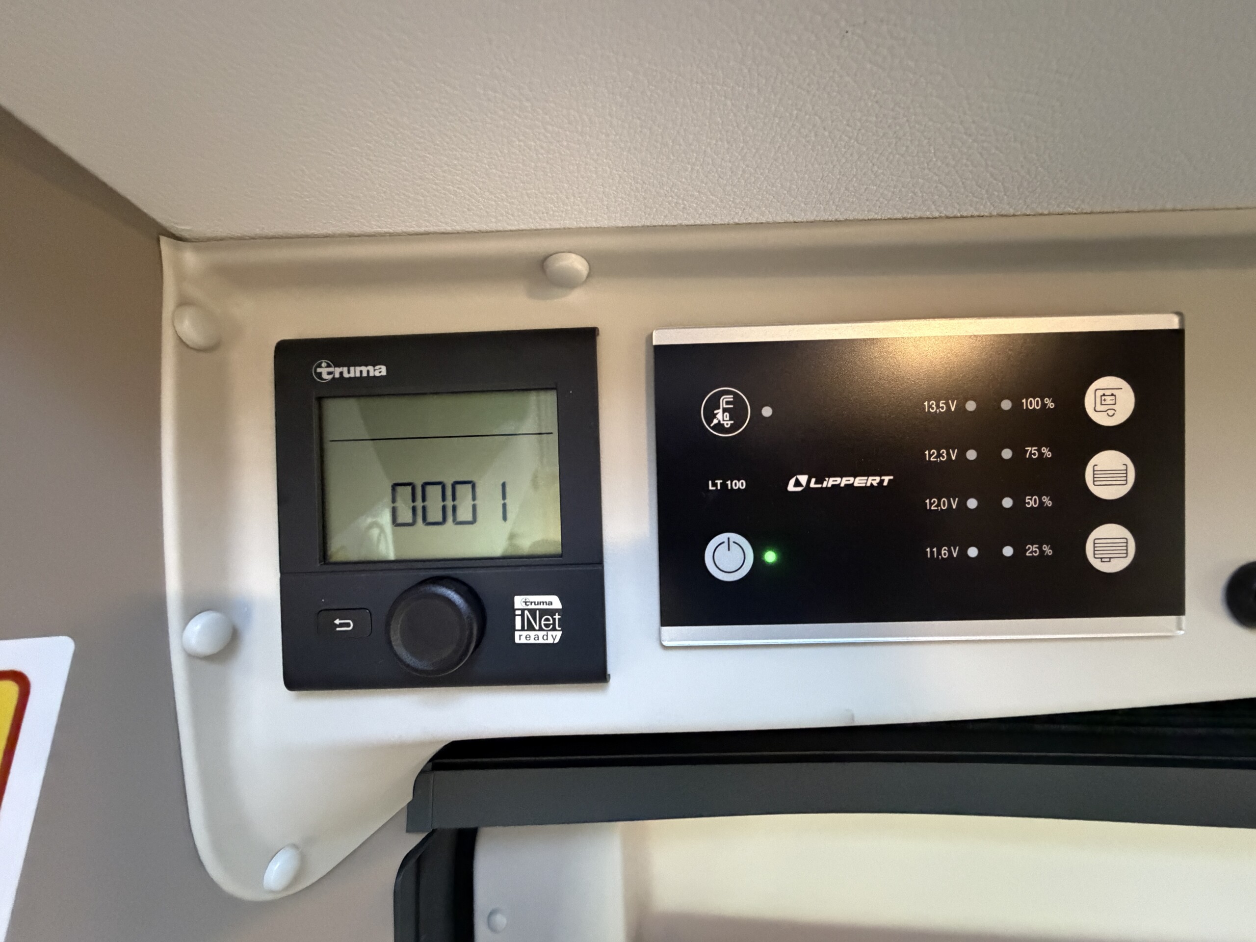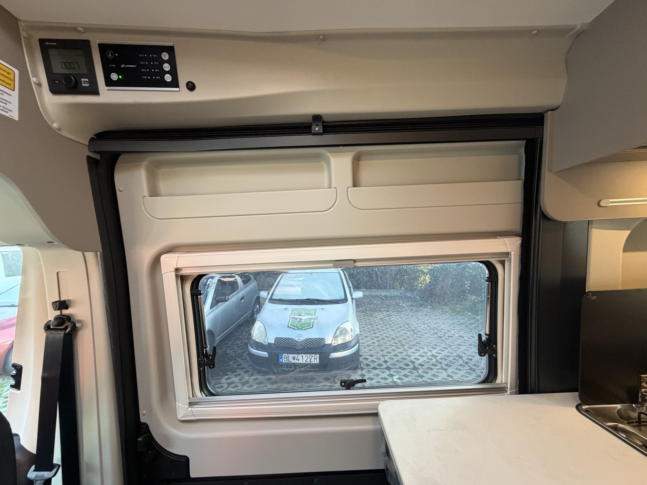 Kúrenie Truma Combi 6E (plyn+elektro) s digitálnym ovládacím panelom, velke strešné okná nad obývacou časťou a spálňou.
