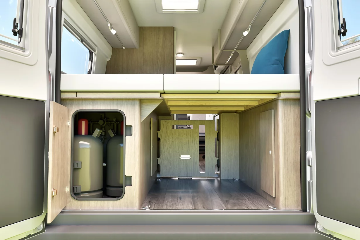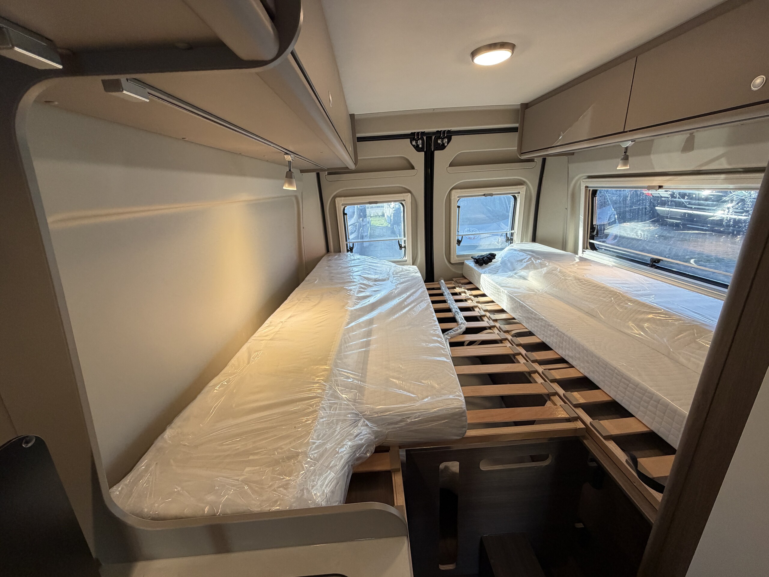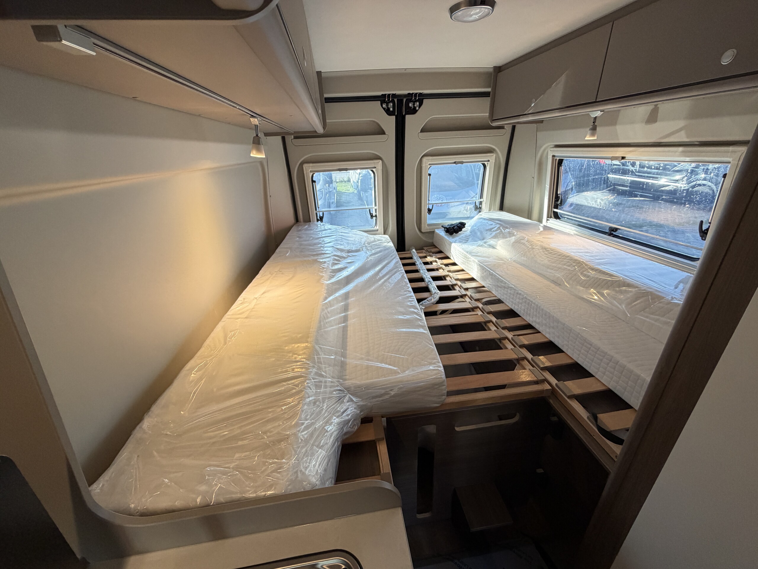 Okrem pohodlných zadných postelí, ktoré sú umiestnené pozdĺž karavanu a poskytujú dostatok priestoru pre dvoch dospelých a jedno dieťa, je možné pripraviť ďalšie lôžko v jedálenskej časti – – všetko je zahrnuté v cene.