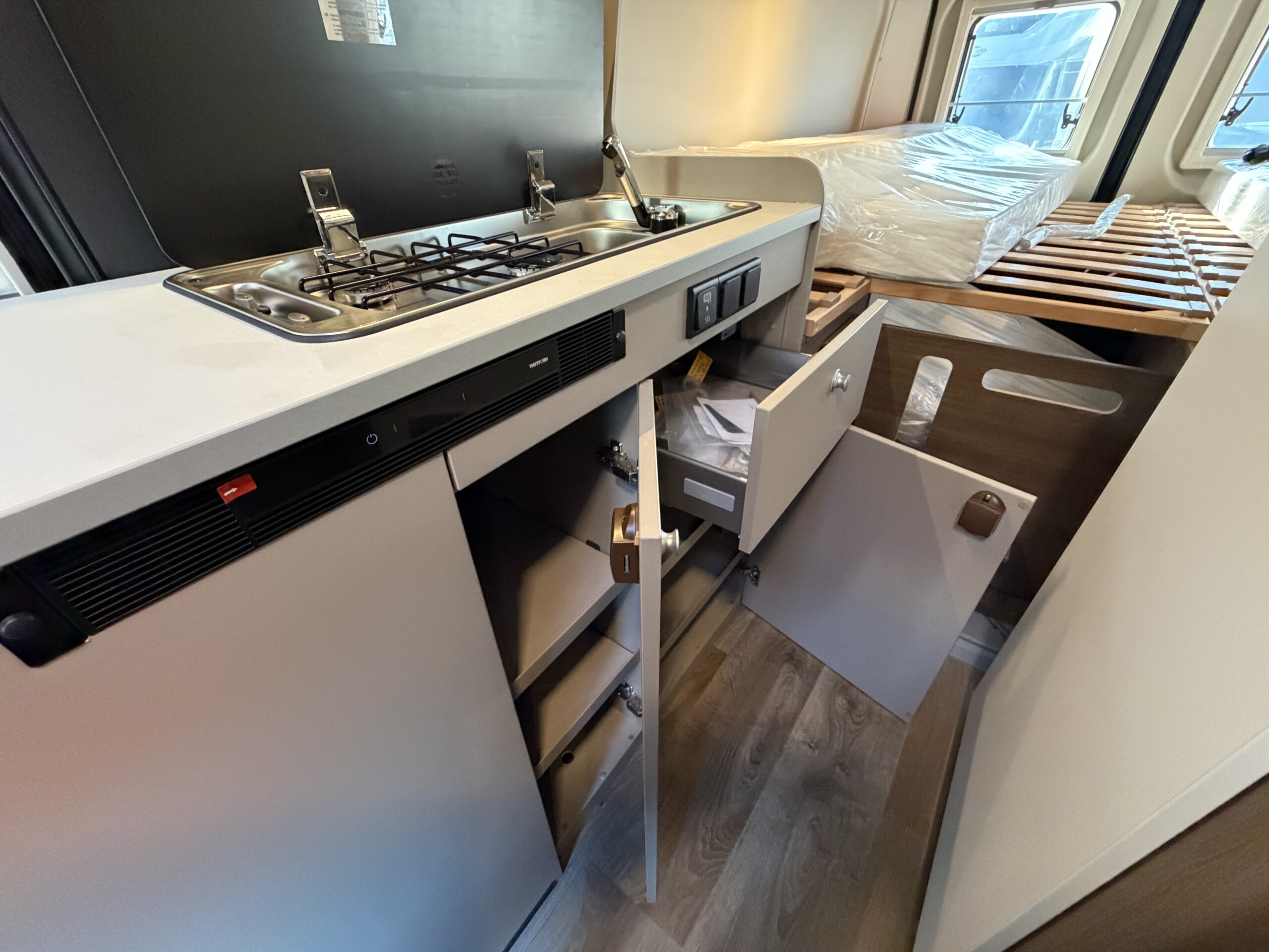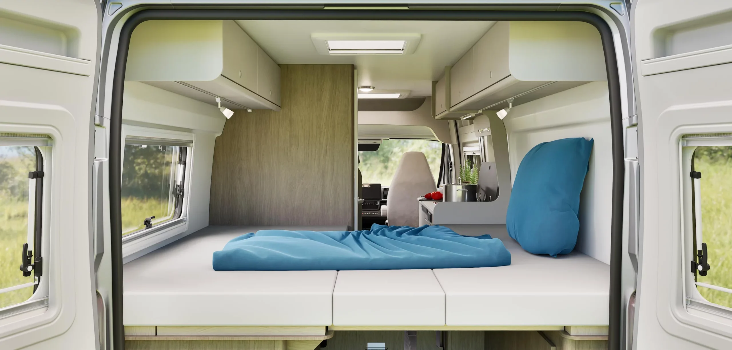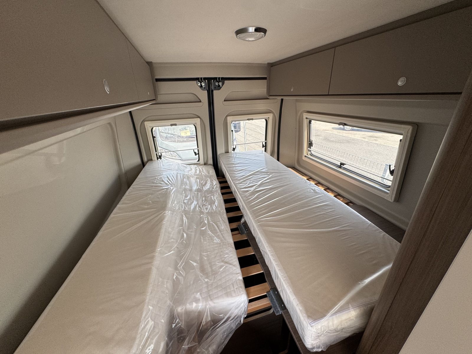 Okrem pohodlných zadných postelí, ktoré sú umiestnené pozdĺž karavanu a poskytujú dostatok priestoru pre dvoch dospelých a jedno dieťa, je možné pripraviť ďalšie lôžko v jedálenskej časti – – všetko je zahrnuté v cene.