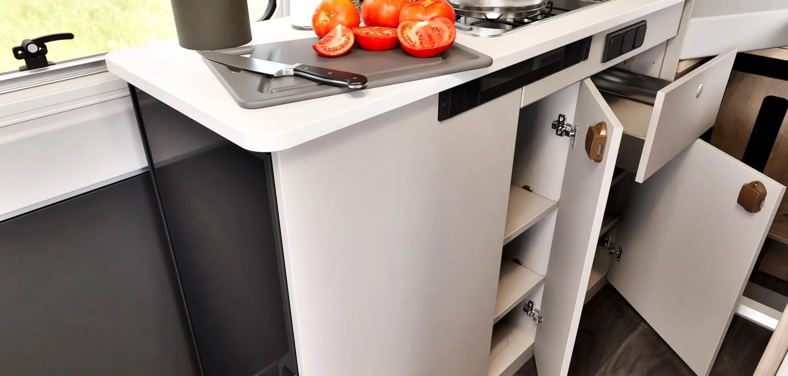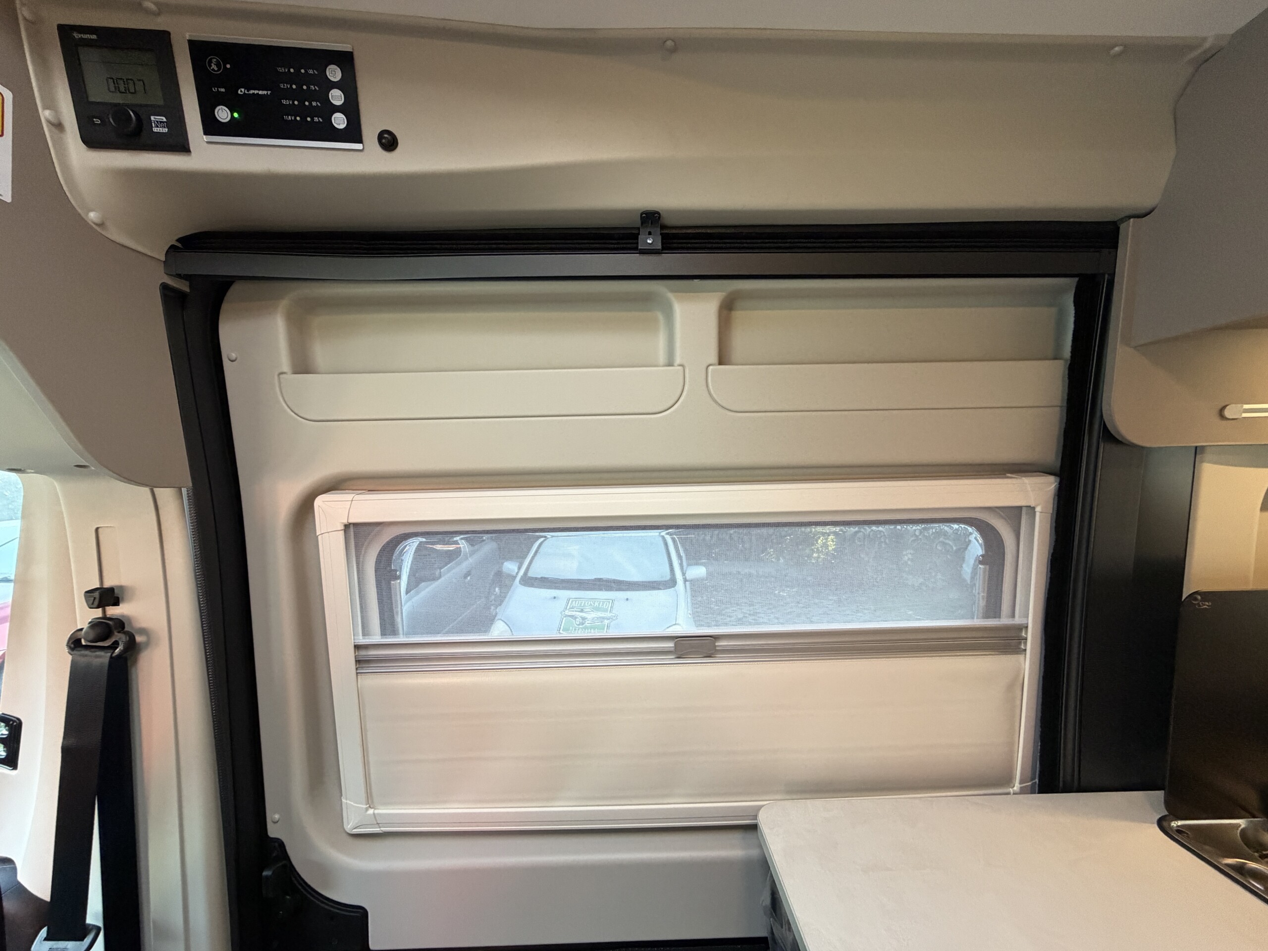 LED osvetlenie, sieťky proti hmyzu a zatemňovacie rolety na všetkých oknách.